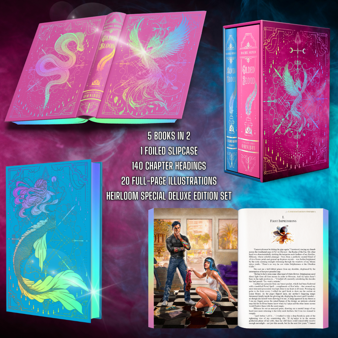 **NOTE: I will be discontinuing BOTH the pink Gilded Blood-only slipcover and the blue Silver Blood-only slipcover after this last print run. So if you're looking to buy either of the individual slipcovers, get them now because next year, only the two-book slipcase will remain.