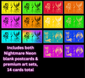 An ultra-limited set 6 of blindingly bright neon postcards with blank backs to use as postcards, notecards, bookmarks, or whatever your heart desires! Colors include: